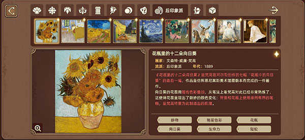 1、游戏内收纳了超百幅西方绘画作品,涉及11个绘画流派以及38位声名远扬的绘画大师。