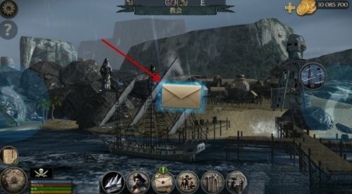 2. 点击进入到一座港口后,我们可以点击屏幕中央的信封图标!