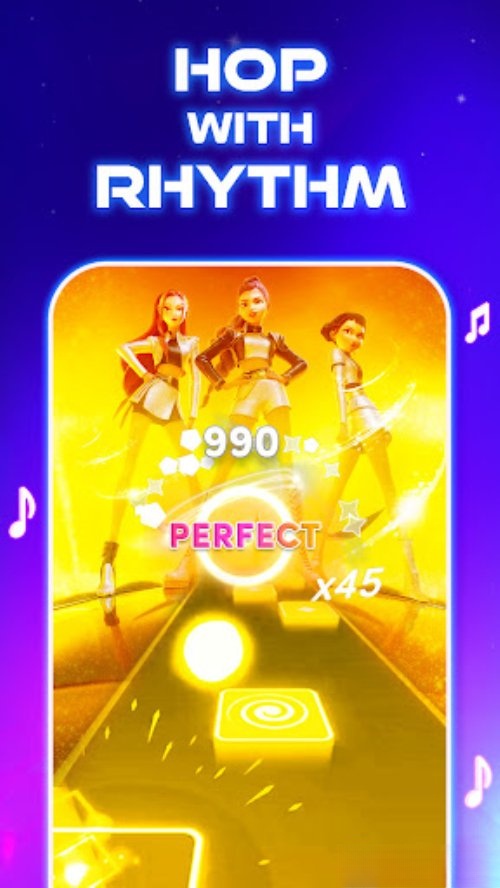 音乐节奏跳跃,英文名为Music Rhythm Hop,是一款画面炫酷的节奏游戏,游戏设有丰富多样的歌曲,玩家将会跟随歌曲的节奏和律动,控制小怪兽跳跃到方块上,踏到特殊方块还会触发炫丽耀眼的特效,视觉和听觉效果也是一绝,喜欢音乐游戏的玩家一定不能错过哦!