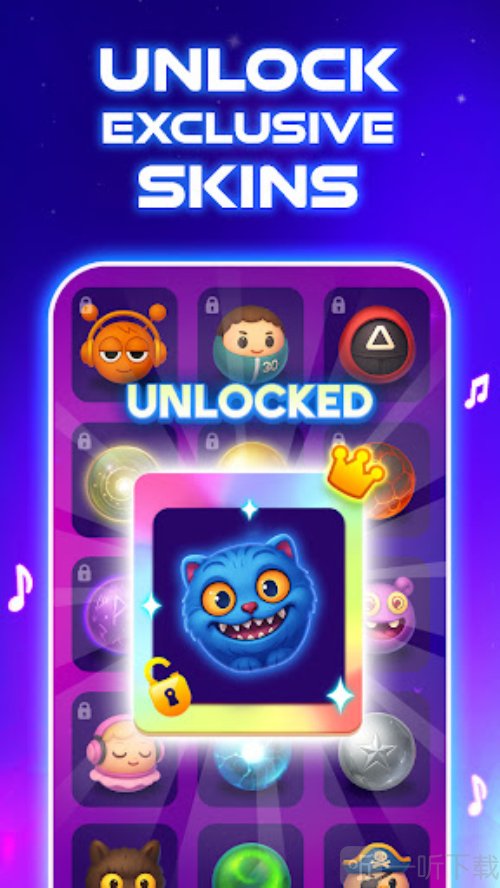 3. 随着玩家等级升级将会解锁更多的歌曲和精美的皮肤。