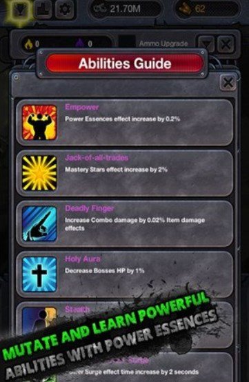3.在游戏中我们还可以不断地去解锁更多的技能,这样的话在前进的时候我们才能够顺利地去完成任务,对敌人造成更大的伤害,这样在后期的时候我们也就可以顺利地拿到高分过关了。