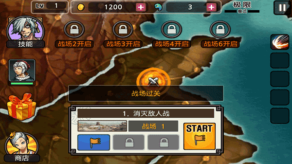 5、装备好技能后选择游戏关卡和难度