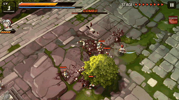 吸血:如果手指点在屏幕上向某一方向快速滑动,而且该方向有敌人(非BOSS),角色就会发动绝杀技,瞬间杀死该名敌人并回复一定的血量,会消耗大量耐力。