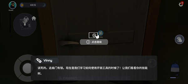 5、获取一些可利用的工具,撬开大门,小心的进入豪宅之中;