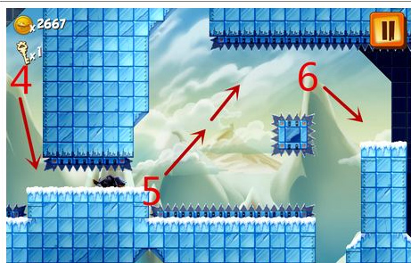 5. 需在5号位置迅速起跳,要特别留意5号位置对弹跳高度有要求,需用手指在屏幕上向上滑动2次。