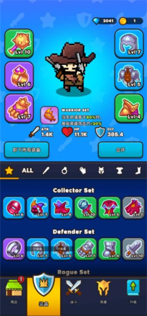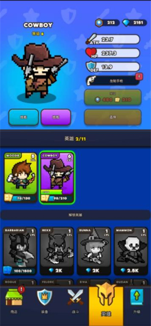 6、成功通过第5章后,英雄与装备将会解锁。点击英雄,即可更换角色。