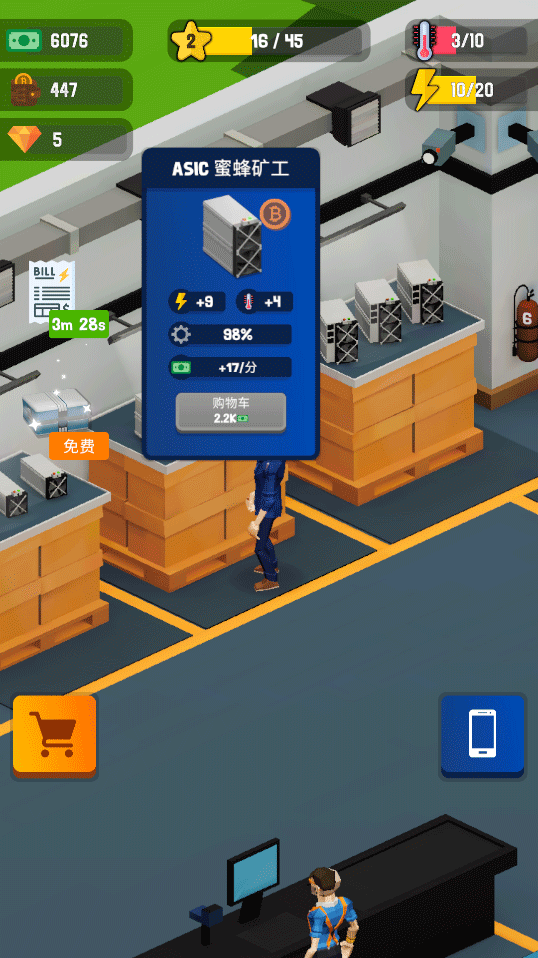 2、身为加密货币挖矿大亨,你要策略性地升级矿工,优化挖矿技术,实现利润最大化。此游戏带来引人入胜的体验,需你积极投入才能取得进展。见证你的挖矿帝国逐步壮大,将操作自动化,迈向新的成功高度。