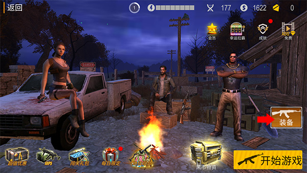 1、于本站安装游戏后,完成基础教程,进入下方主界面,点击右侧的装备按钮,就能进入武器更换界面。