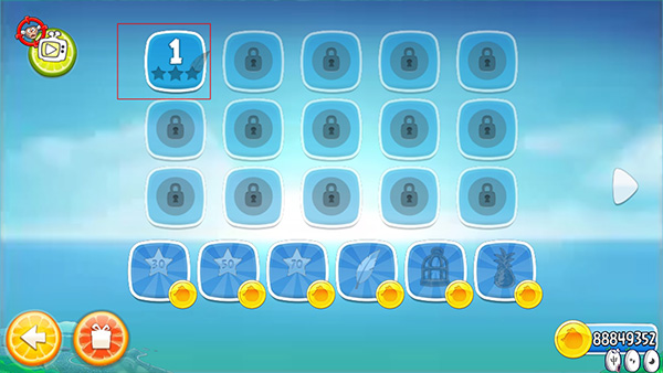 第一个金香蕉:藏于屏幕右上方的箱子之中,用一只黄色小鸟击中箱子就能获取。