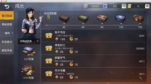 玩家每天可完成每日挑战任务面板里的任务,获得一些经验值、活跃度、银币等奖励,任务次数每天24时重置。玩家点击游戏界面下方的“成长”字样的美女图标,可进入到每日挑战任务面板。若有已完成的每日任务,“任务”图标处会显示完成的任务数量。玩家进入到每日挑战任务面板,就能领取对应的奖励。