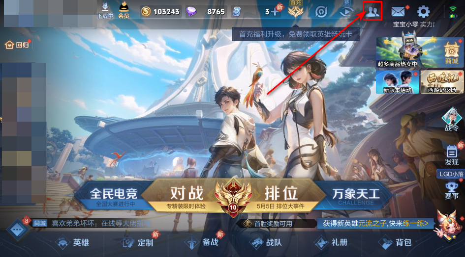 2、为了帮助好友获得荣耀水晶,我们可以赠送其荣耀积分和为好友的账号充值点券,这也是最接近送水晶的方式。