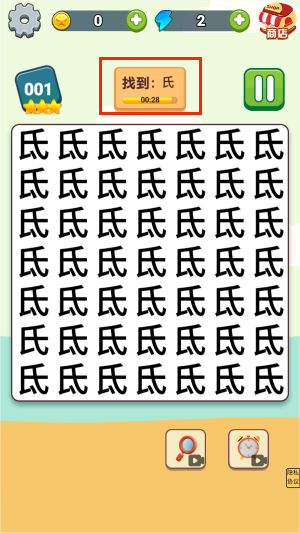 2在一堆外形相近的汉字里认真分辨,找出藏在里面的指定“氏”字标识。