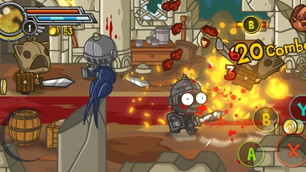 1、游戏的操作非常的简单,模拟的是摇杆手柄,左边是模拟摇杆,右边是模拟按键,其中左边控制角色的移动,右边Y键释放魔法,B键闪避敌人攻击,A键跳跃,X键则是普通攻击。另外游戏中还有着终结技能,只要你将敌人打到一定程度等它头上出现B键的图标,我们就可以走进敌人然后按下B键就可以释放出独具特色的终结技能了。