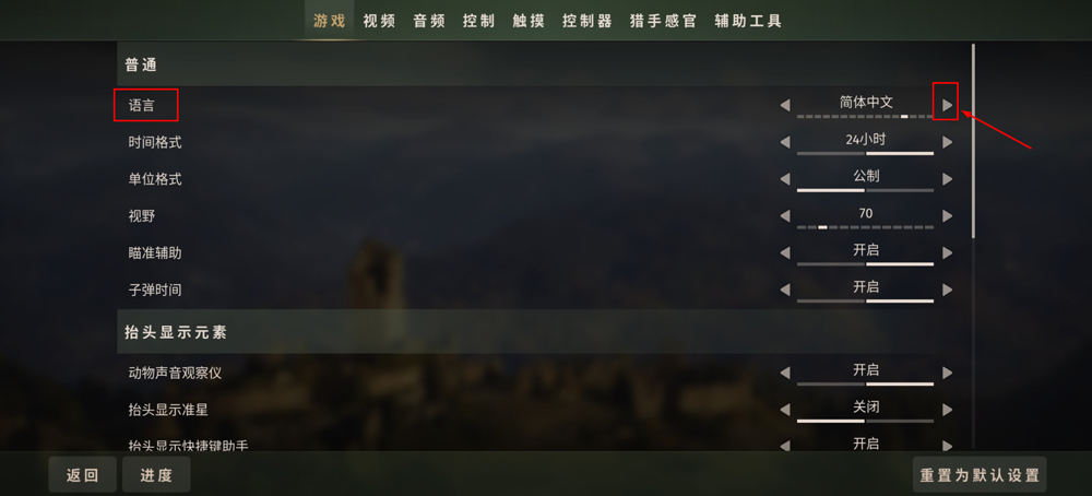 2、接着找到Language,点击箭头切换语言为简体中文即可。