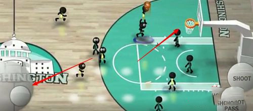 玩家要操控火柴人在场地上进行移动,以此来完成不同的篮球动作。
