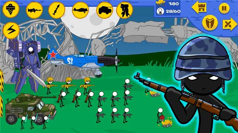 使用现代高科技装备,投入火柴人风格的激烈战争中!扮演现代士兵,使用各类枪械、载具甚至无人机进行战斗。无论是单人任务还是多人对抗,逼真的武器手感和现代化的战术元素,都能带来紧张刺激的现代战场体验。