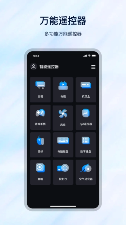 万能遥控开关器是一款功能强大、简单易用的手机遥控软件,支持多品牌电子设备,一键搜索、遥控开关、鼠标操作等特殊功能,大大提升了用户的生活体验。无需专业技能,通过简单配置即可实现手机远程控制,同时支持在线远程控制、蓝牙连接等功能,让用户随时随地控制电子设备。软件体验舒适,操作方式简单,可以适配大部分手机机型,是用户追求便捷舒适的最佳选择。