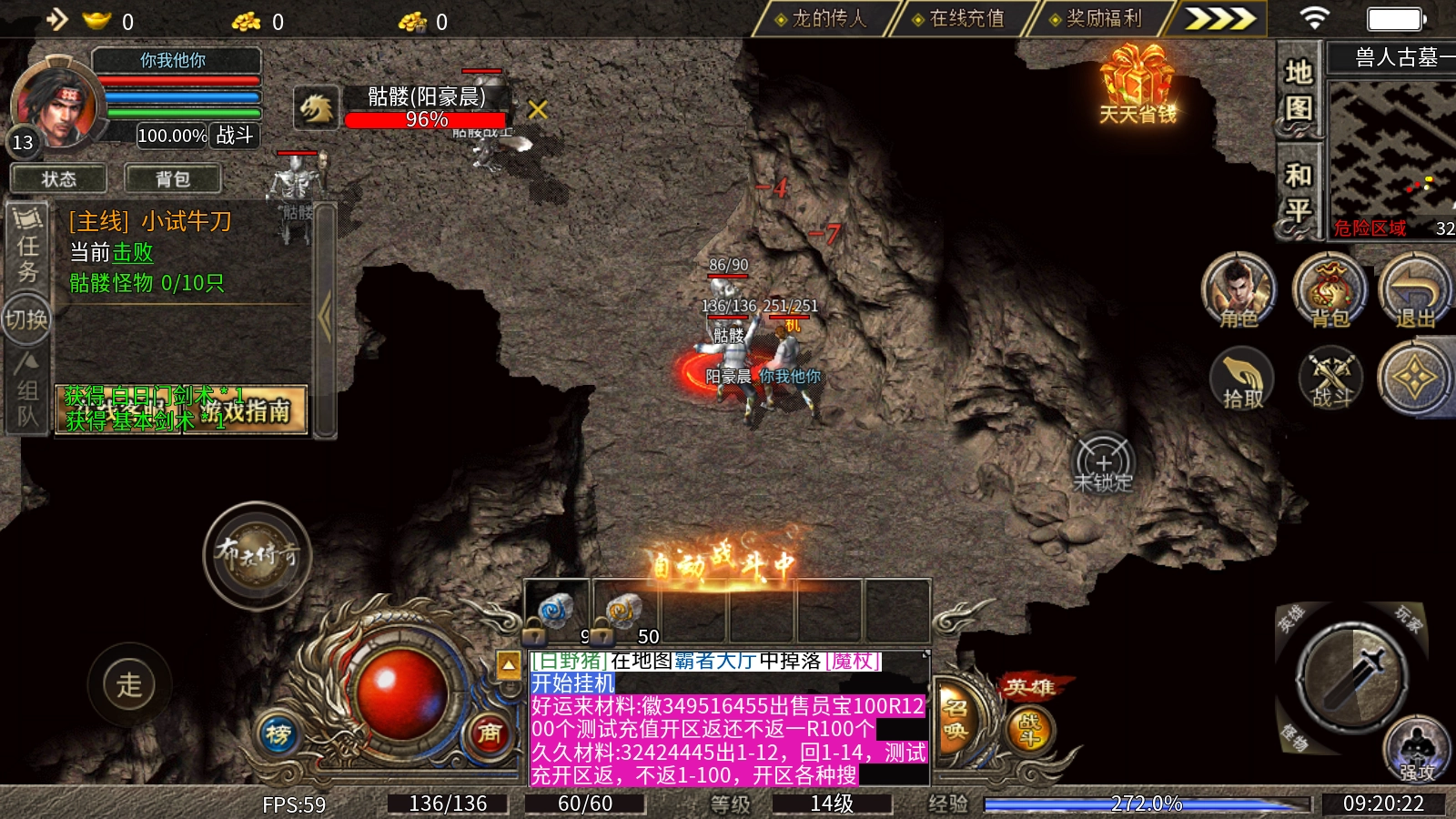 在线回收:野外(除部分高级地图)可以免费挂机,自动捡取商店装备可自动分解-绑金,开启龙的传人称号可解锁商店装回收金币,在背包下方-[在线回收]处设置,极品装备可过滤不回收,在[设置]里设置物品捡取类别。