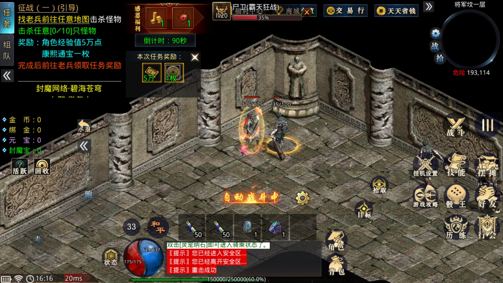 骨灰路线:借助老兵进入险恶地图,击杀普通怪物、绿色极品怪物等!地图中刷新的紫色、橙色、红色怪物均为BOSS级,能掉落大量材料与装备。
