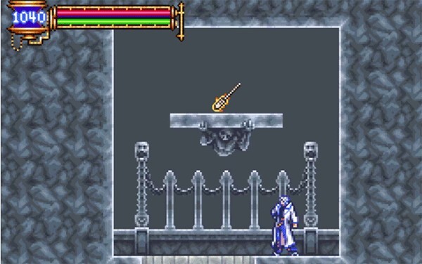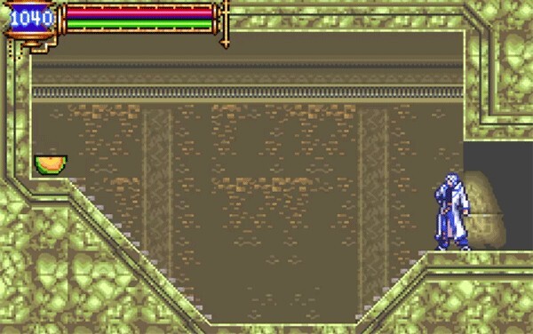 3、三号隐藏房间的位置在恶魔城藏书库存档点的最上方,一直走到最上侧后往左走,会看到一堵墙。