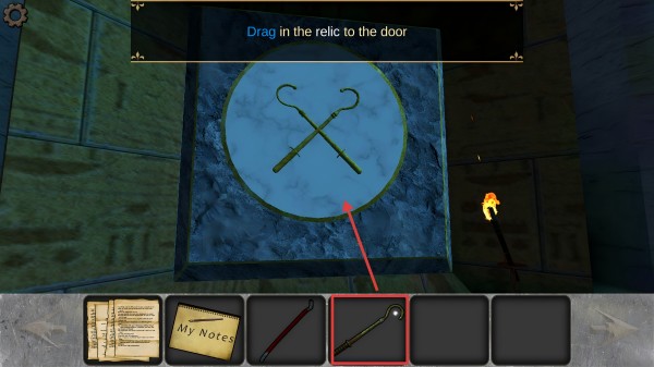 3、遇到石门时,根据提示,把对应的道具拖到门上的图案位置,就能触发机关打开通道。
