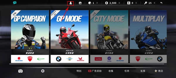 1、进入到游戏大厅之后,在上方有一个小人头的标志,点击进入;