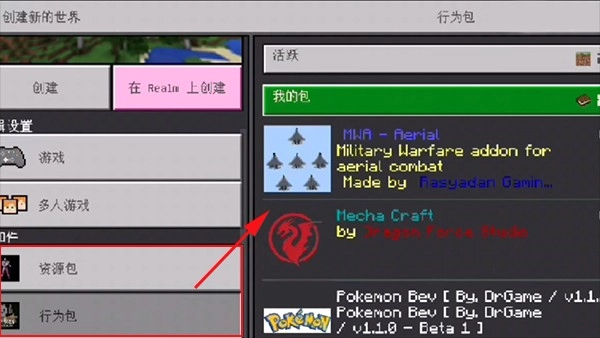 6、接下来返回游戏创建世界,在“资源包”中即可选择刚才下载到的mod模组了