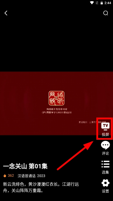 2、点击之后进入播放界面,大家能看到右侧就有投屏功能,点击进行设置。
