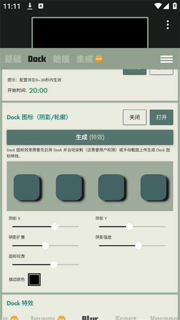 3、在dock标签处包含了不同特效及相关参数可以自由选择设置调整