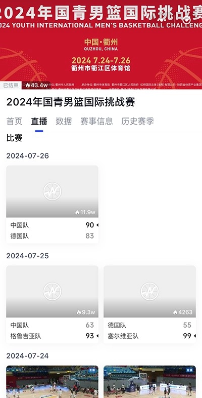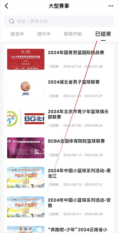 2、点击已经结束的赛事,挑选自己想看的赛事并进入。