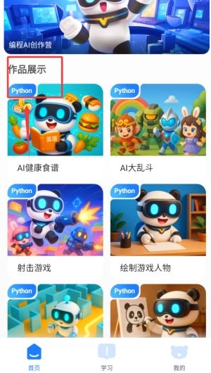 3、作品展示区汇集平台学员的优秀编程项目,支持浏览点赞并获取创作灵感