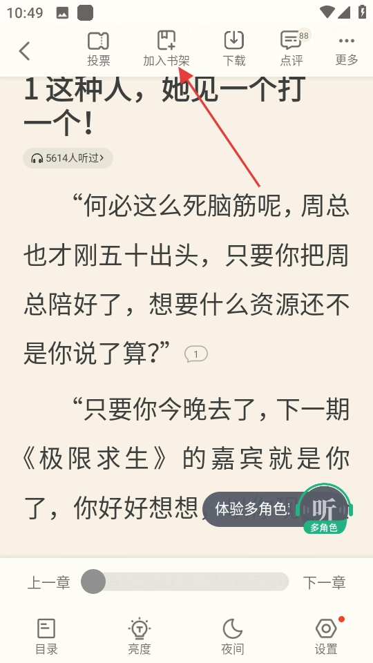 3、,点击屏幕,选择加入书架,保存书籍以便后续继续阅读。