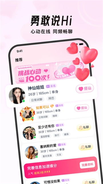 1、勇敢开口说Hi:心动瞬间,在线同频畅快聊天