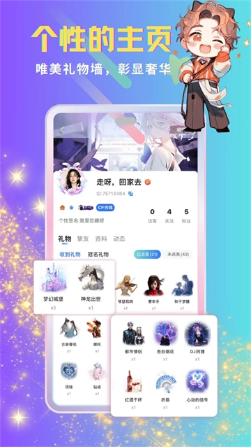 5、独具个性的主页:打造唯美礼物墙,尽显奢华格调。