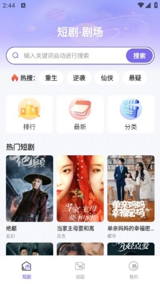 1. 轻点首页顶部的搜索栏,输入短剧名称、主演或是题材等相关关键词,就能迅速找到目标内容。
