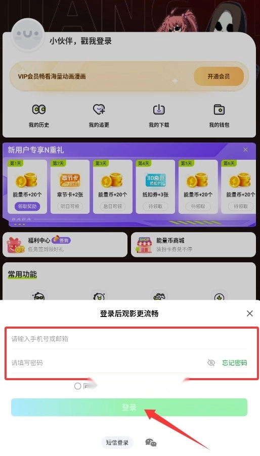 1. 初次使用叭嗒看漫画APP,能够借助手机号或者邮箱来完成账号的注册与登录操作,这样可以保证个人数据同步得到保存。