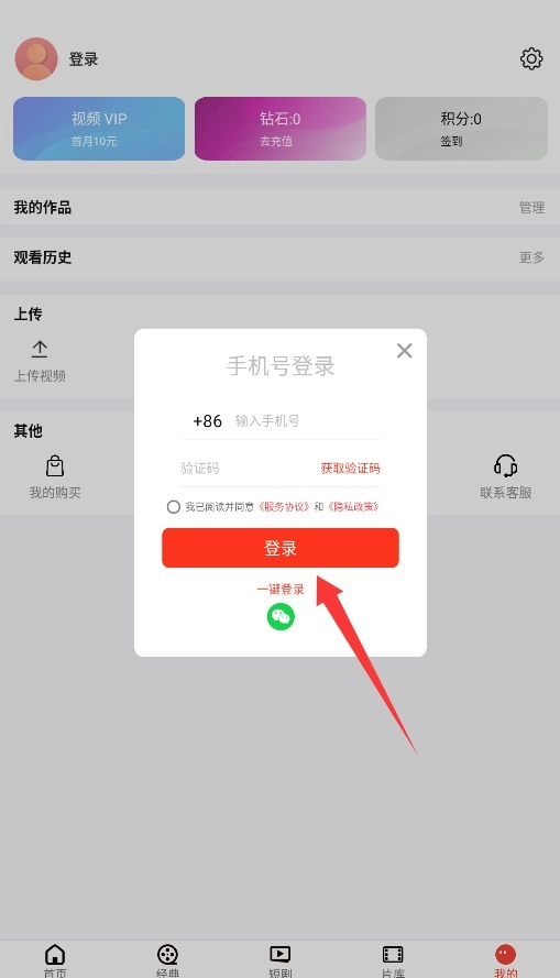 3、输入正确的手机号码,获取验证码,勾选用户协议,随后点击确认,完成登录流程。