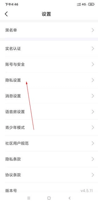 2. 在设置页面中找寻隐私设置