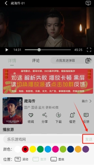 4、点击“发送”,随后就能查看已发送的弹幕。