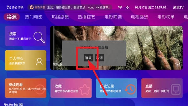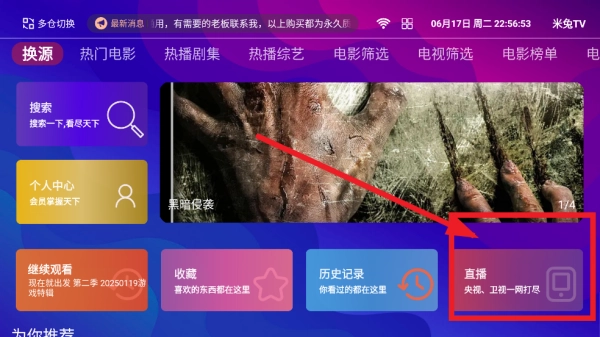 6、注册完成后,即可返回首页,点击直播进行观看。