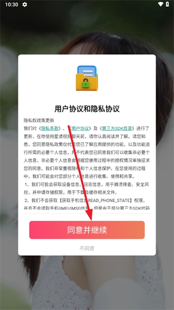 2. 点击“同意并继续”以及个人信息保护指引。