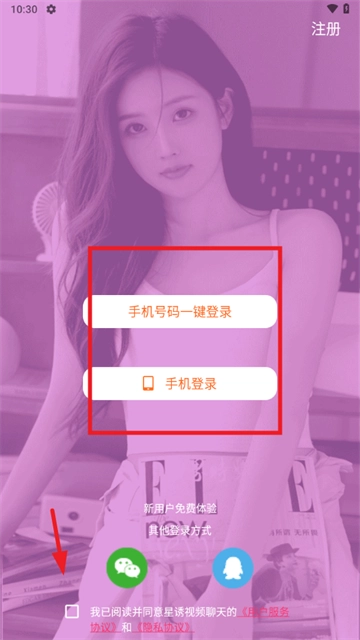 3、请选择通过手机号进行登录,同时不要忘记勾选用户政策。
