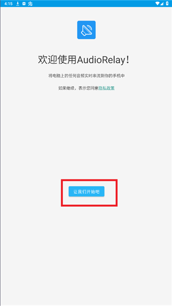 1、打开audiorelay软件,在主界面点击“让我们开始吧”。
