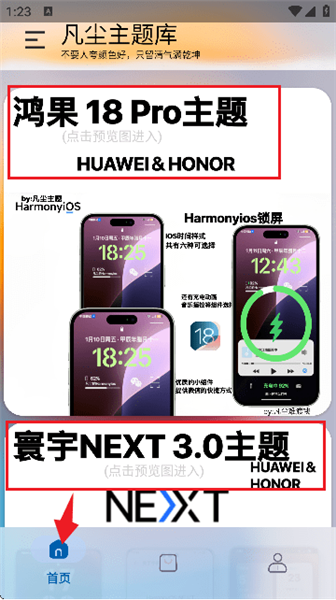 2、进入到软件首页中,如图所示。这里提供了鸿果18Pro主题、寰宇NEXT3、0主题等主题