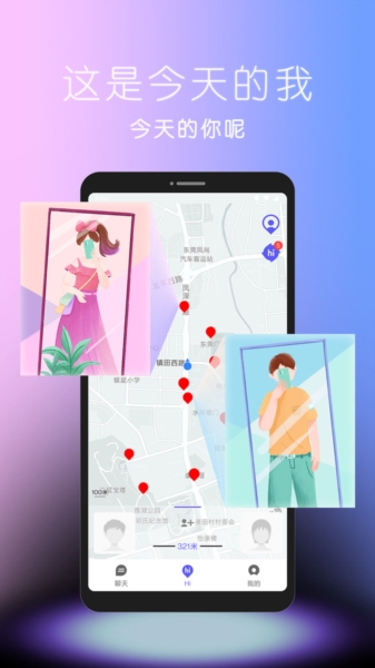 1.地图-查看附近也在使用本应用的用户的位置,实时更新附近用户的位置,方便用户找到对方。