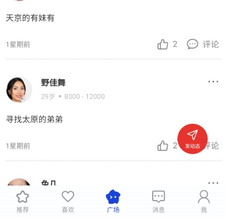 1、添加发布自己的动态内容,支持点击动态里面的添加功能将自己的交友动态发布;