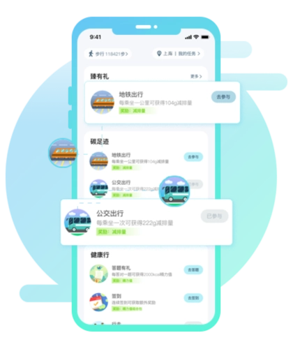虚拟的数字世界里记载着现实践行的点点滴滴,所有绿色生活的点滴都能被看见、被计量、被惠及。