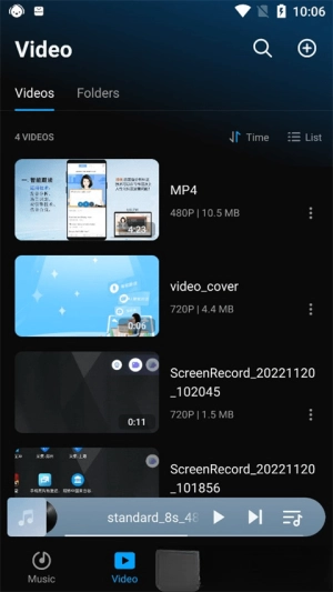 在视频板块中可以读取到手机本地的所有视频,在这里大家可以选择简单的音频播放、分享和整理。