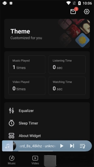 在这里拥有均衡器、定时功能、添加到主屏幕以及每天听歌、观看视频的时长等等。