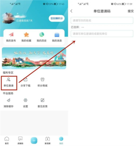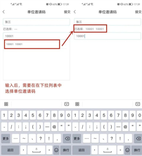 在姓名框中输入本人姓名,在邀请码一栏中输入邀请码并在下拉列表中选择对应的邀请码,点击“提交”即可
